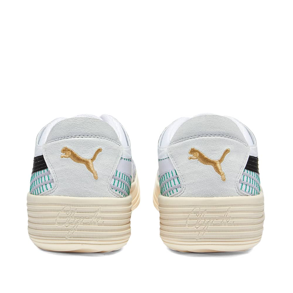 Laker Purple dresses the formstrip & weave on the upper paired with Yellow accents at the collar and suede heel patch for the LA themed pair. As for the Boston colourway, the teams iconic Green highlights the woven upper along with a Black formstirp on the lateral. Both sneakers feature Gold Puma branding on the tongue completing this celebratory design.