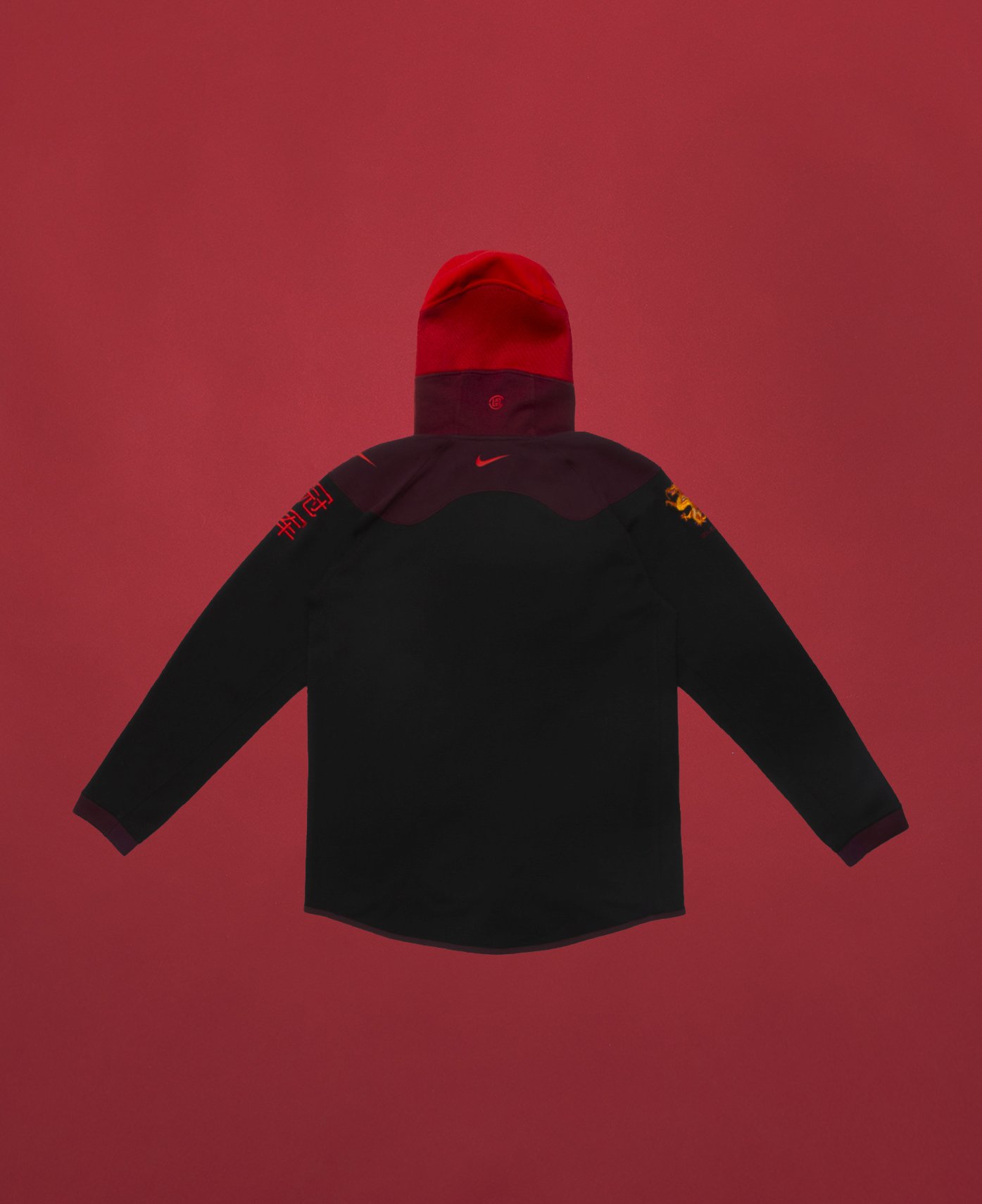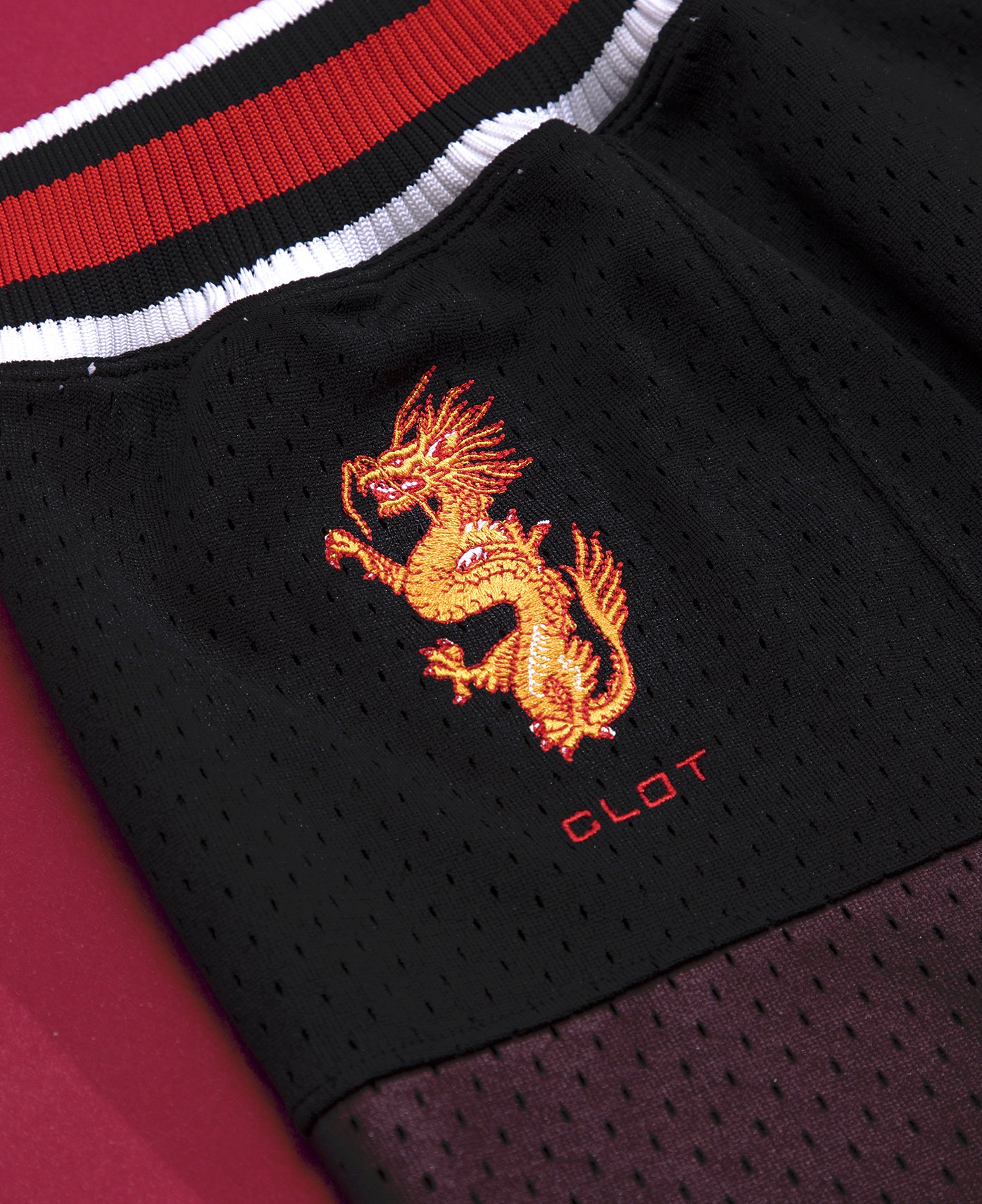 Each piece features bold graphics such as a lion dance costume head on the jersey and an embroidered CLOT dragon plus the words “冠军” (champion) on the shorts – symbolising Nike and CLOT’s best wishes to all the competing teams.